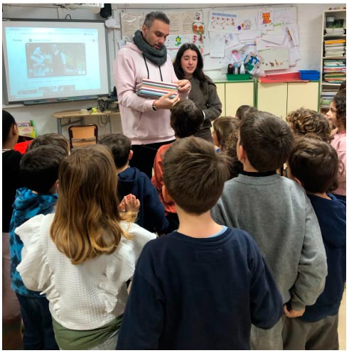 Una mañana, varias chulapas y chulapos entraron en las aulas, y entregaron al alumnado unas cajas misteriosas.